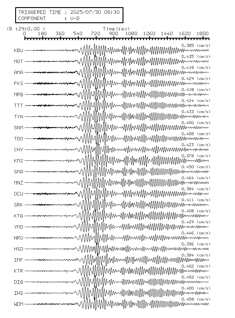 2025年7月30日8時25分頃にカムチャツカ半島付近で発生した地震(Mw8.8)